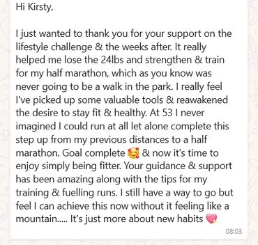 Every client is treated as an individual and given 121 advice/feedback following weekly check in and you will join our amazing group of ladies who offer support and advice in our private what’s app chat.