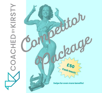 Coached by Kirsty if offering a competitor package to cater for all your needs to get you ready to step on stage. And an added bonus …. When you complete your prep and do get on stage you will receive £50 cash back!